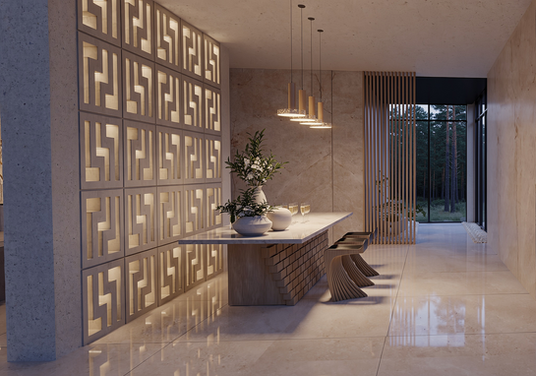 A conceptual restaurant in a forest clearing, where the journey to the table is part of the experience. Guests transition from car to foot, moving through the trees before entering a space shaped by layered wood screens, soft lighting, curved seating, and expansive views into the landscape. With only six tables, the design explores how hospitality interiors can foster privacy, atmosphere, and a strong sense of place.